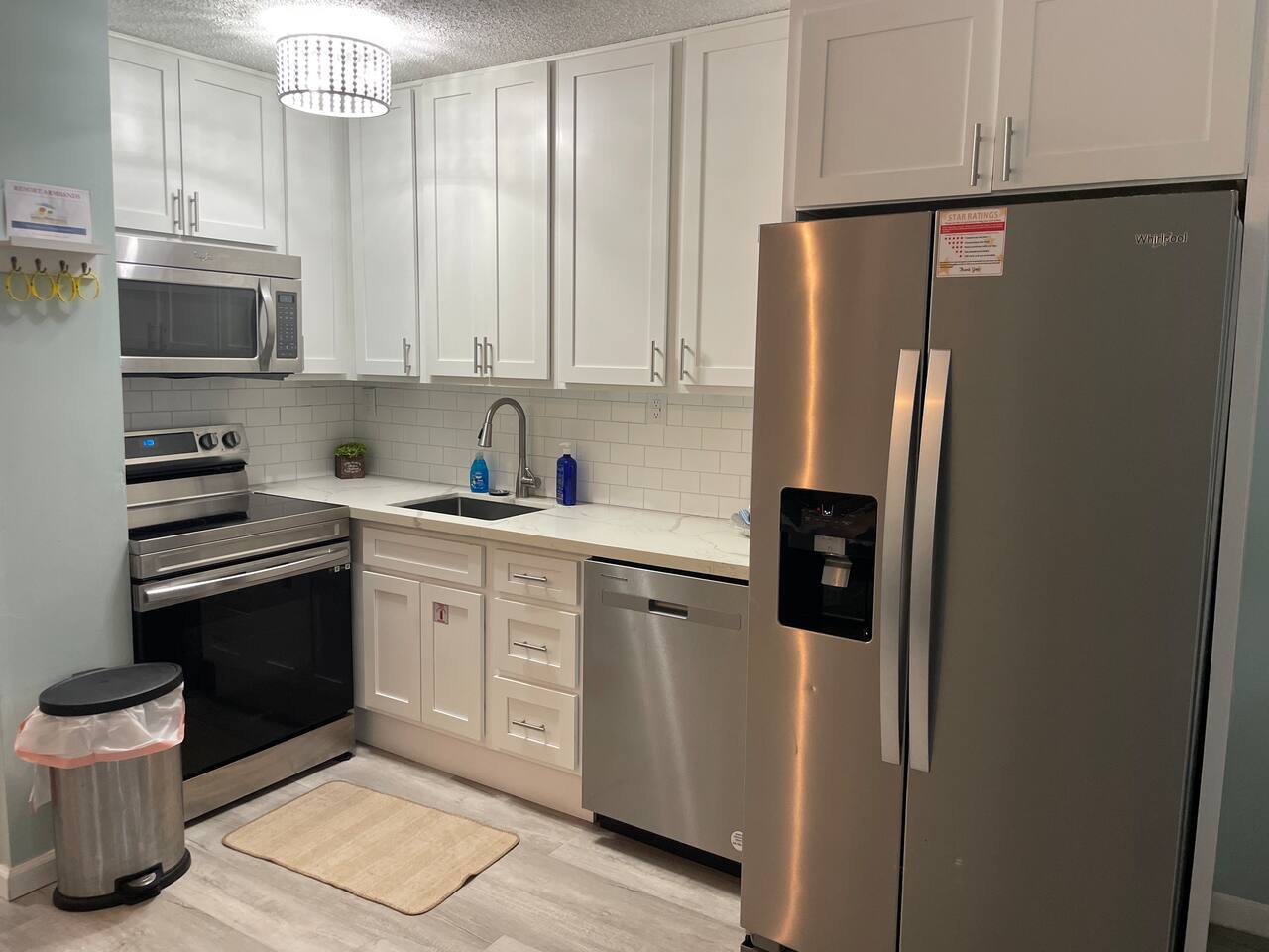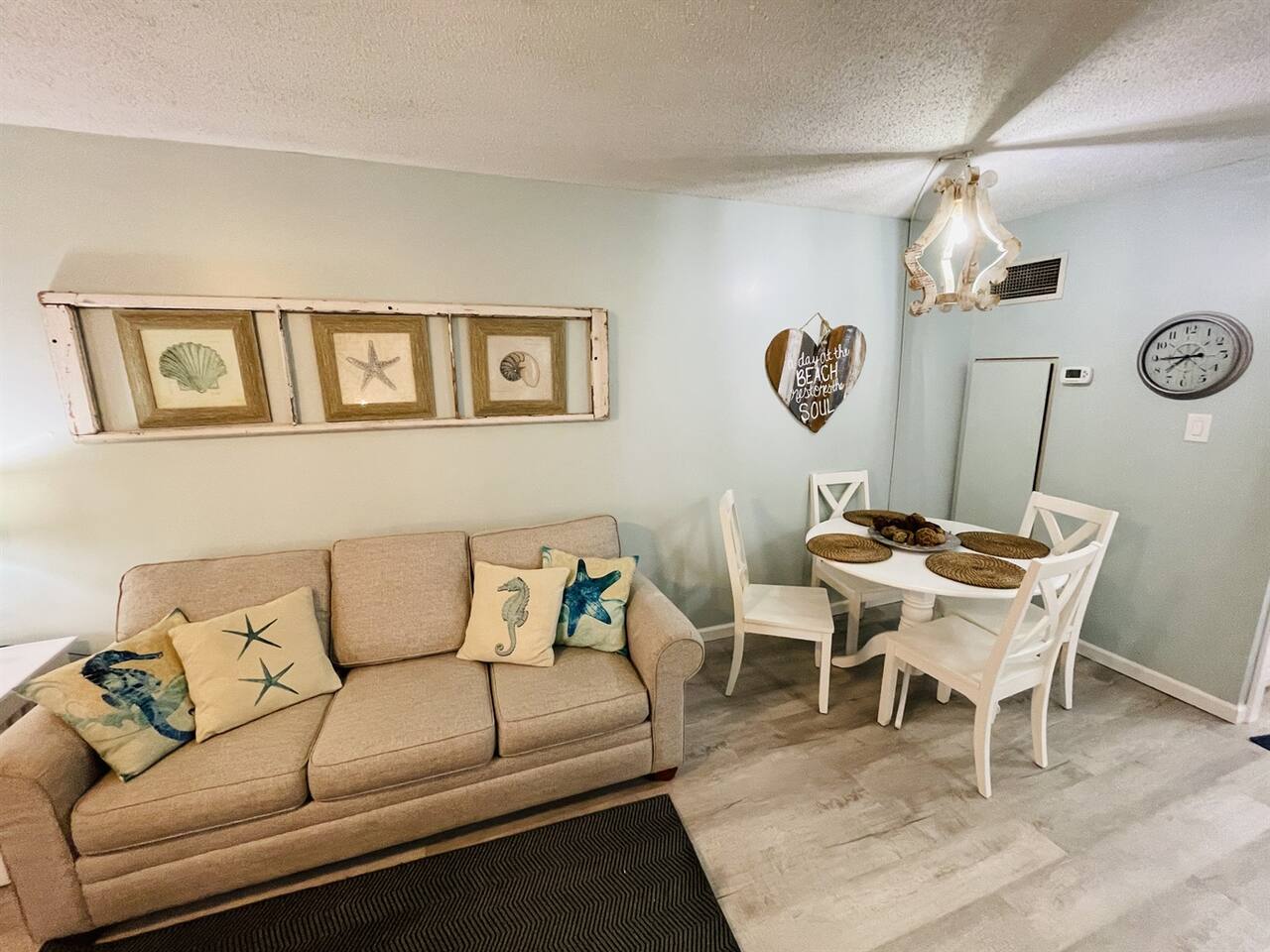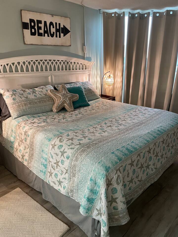 This renovated condo has everything you need for a great vacation on the beach. The kitchen is stocked with everything you need for cooking or fixing a quick snack before you head back to the sand. The kitchen has quartz countertops and full size stainless appliances. WE SUPPLY: All bed linens and 6 bath towels 2 hand towels and 4 wash clothes. Two rolls of toilet paper, one dishwasher detergent capsule and two trash bags will be also provided . This condo is equipped with a coffee maker, blender, iron and all necessary cooking utensils as well as WIFI in the unit. DAILY HOUSEKEEPING SERVICES ARE NOT PROVIDED DURING YOUR STAY. There is a coin operated washer and dryer on the same floor for your use if you need to wash your linens during your stay. No condos at Top of the Gulf have a private balcony but there is a small balcony a few steps outside our door that is perfect for watching the sunset. Just down the hall is a large common balcony with plentiful seating that faces directly towards the gulf. This is a non smoking/vaping unit. You must be 21 and show ID at check in.